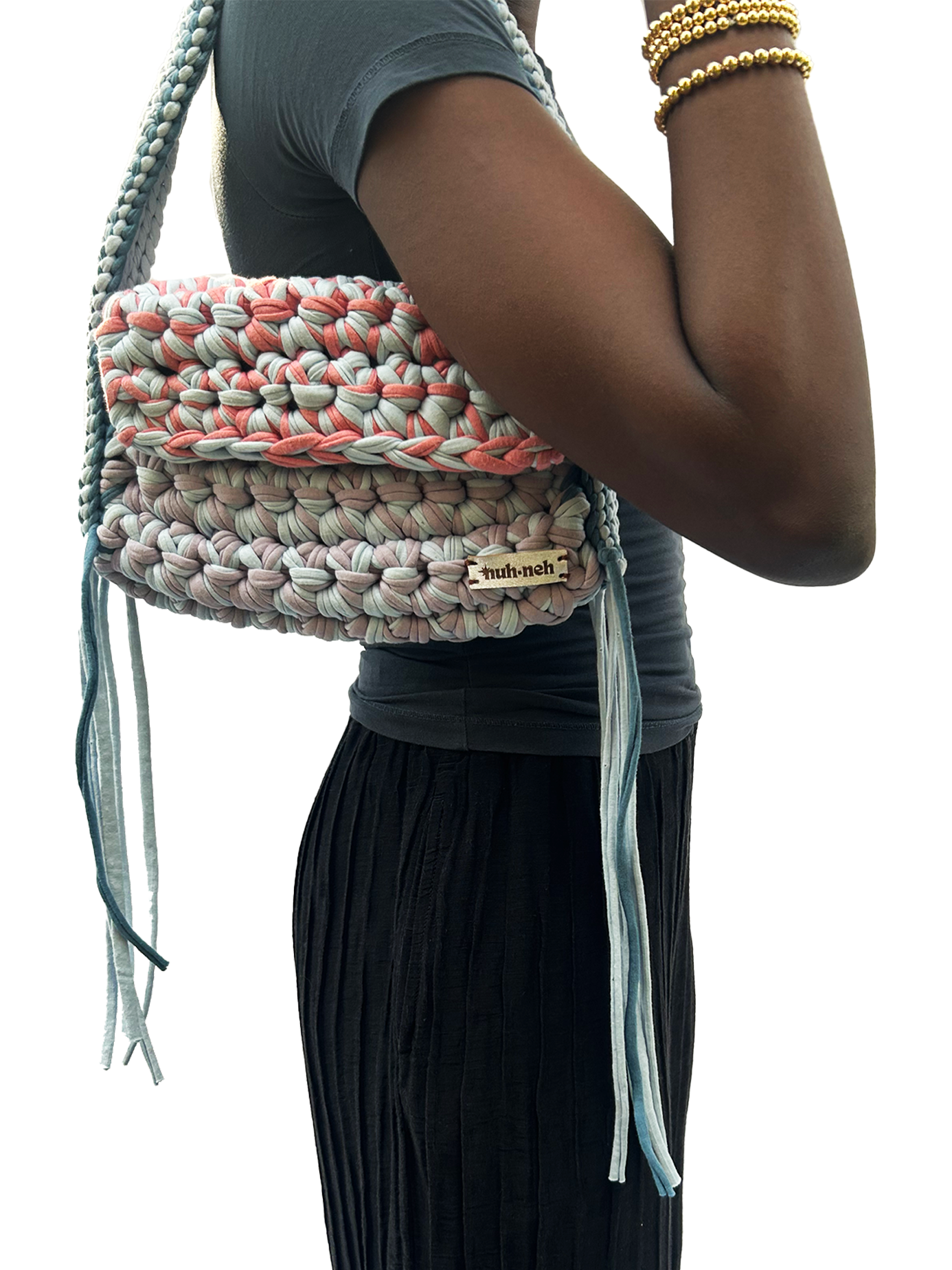 Just like any handmade piece, imperfections become a canvas for individuality. Embracing the essence of upcycled materials, expect a hint of character – whether it's a raw detail, a knot or a random stain or stitch mark. These quirks define the uniqueness of a nuh neh bag.
