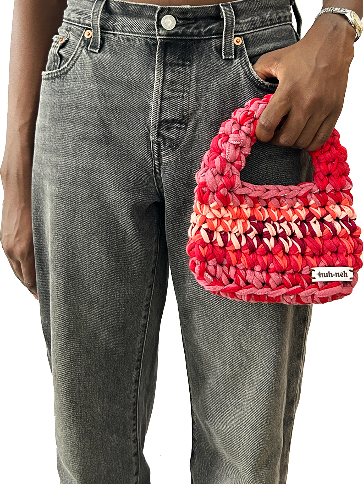 Just like any handmade piece, imperfections become a canvas for individuality. Embracing the essence of upcycled materials, expect a hint of character – whether it's a raw detail, a knot or a random stain or stitch mark. These quirks define the uniqueness of a nuh neh bag.